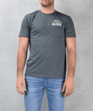 Het shirt is op de linkerborst en op de rug bedrukt met de tekst “Trots op de boer”.